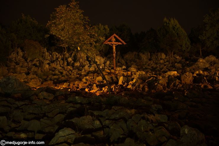U lipnju 2002, brončani reljefi slavnih otajstava krunice (rad prof. Carmela Puzzola) postavljeni su na stazi koja s mjesta ukazanja silazi prema Plavom križu. U podnožju Brda ukazanja nalazi se Plavi križ, postavljen 1985. godine. Na tom se mjestu od 4. srpnja 1982. redovito sastaje molitvena skupina Ivana vidioca.