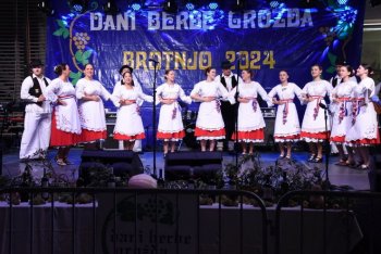 Nakon svečanog otvaranja visoka izaslanstva i dužnosnici u pratnji domaćina obišli su štandove vinara, no prije toga započeli su nastupi na velikoj pozornici Dana berbe grožđa. Ženska klapa „Bura“ župe Gradina svojim je nastupom započela zabavni program, na sebi svojstven način dobrodošlicu ljubiteljima vina i tradicije poželio je mladi zdravičar Ilija Proleta, a tradicionalni scenski prikaz gaženja grožđa praćen muškom gangom i bećarcem upriličili su članovi HKUD Brotnjo.